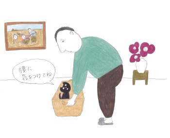 ぎっくり腰を起こしやすい前かがみの姿勢や、急に腰をひねるといった腰に過剰な負担をかける姿勢や動作、重いものを持つようなことは避けるようにしましょう。