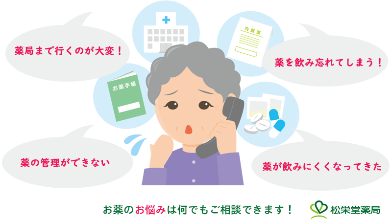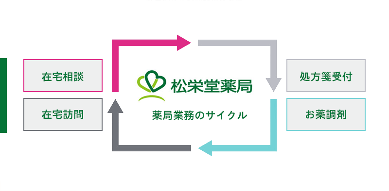 松栄堂薬局は、私たちが関わることによって、患者さま、ご家族さま、介護者さまが活き活きとした生活ができる「まちの薬局」を目指しています。地域に密着した薬局として、何でもご相談いただけます。